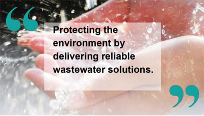 Protect the environment and build a sustainable future by designing, by manufacturing, sourcing or supplying a wide range of advanced wastewater products and services which meet or exceed our customers’ expectations in terms of quality, reliability, cost and service. To benefit our employees, customers, suppliers, stakeholders and the wider global community in which we operate.